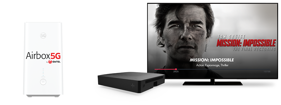 Votre offre tout en un ! Internet AIRBOX 5G by Emtel et CANAL+. Internet 75 Mbps en illimité, 3 TB et en plus + 36 chaînes TV incluses.